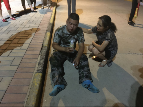 軍訓(xùn)第四天晚上,高壓電器系的一個(gè)孩子在訓(xùn)練時(shí),高血壓發(fā)作,忽然昏倒。他的班主任李嚴(yán)靜老師立刻趕到,守護(hù)在孩子身邊,積極聯(lián)系醫(yī)生救治,因?yàn)閾?dān)心這個(gè)孩子會(huì)腦溢血,所以讓他一直平躺在地上,而李老師就一直蹲在他身邊照顧他,陪他說(shuō)話,給他寬心,直到醫(yī)生趕到,確認(rèn)這個(gè)孩子沒(méi)有危險(xiǎn)后,李老師才站起來(lái)開(kāi)始聯(lián)系孩子的家長(zhǎng),通報(bào)情況。因?yàn)殚L(zhǎng)時(shí)間下蹲,李嚴(yán)靜老師站起來(lái)時(shí)差點(diǎn)摔倒。