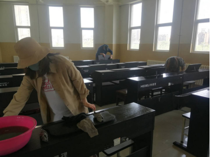 布滿灰塵的教室,經(jīng)過老師們一天的努力工作變得煥然一新。李治軍等一些年齡較大的老師們不怕臟和累,沖拖把,掃地,擦桌子;孫依盈老師是一位準(zhǔn)媽媽也在接水掃地努力打掃,所有的老師們都是為了學(xué)生開學(xué)以后有一個(gè)干凈整潔安全的學(xué)習(xí)環(huán)境在不遺余力地努力。讓我們?yōu)樗麄円闳环敌L崆斑M(jìn)行的消殺工作大大地點(diǎn)贊。