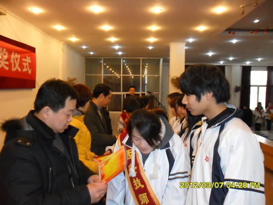 2011年3月7日,學(xué)生工作處于兩校區(qū)同時(shí)進(jìn)行了“陜西省技能扶貧助學(xué)基金會(huì)獎(jiǎng)學(xué)金”頒獎(jiǎng)儀式,旨在激勵(lì)我院品學(xué)兼優(yōu)、家庭貧困的學(xué)生順利完成學(xué)業(yè),培養(yǎng)其自強(qiáng)自立、勤奮學(xué)習(xí)、積極上進(jìn)的良好職業(yè)道德素質(zhì),為其他同學(xué)樹立榜樣。學(xué)院黨委副書記陸健安、副院長袁建章、機(jī)械工程系主任田玉芳、計(jì)算機(jī)系主任梁棟、學(xué)生工作處處長張民、副處長李智、楊坤及各系學(xué)生主管出席了此次頒獎(jiǎng)儀式。
