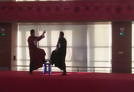 開幕式現(xiàn)場電影放映隊(duì)的同學(xué)還給大家準(zhǔn)備了精彩的節(jié)目。主持人給大家介紹本次活動(dòng)的主題及放映周活動(dòng)安排;學(xué)生社團(tuán)聯(lián)合會(huì)秘書長石雨宣布開幕式開始;最后由各個(gè)社團(tuán)給在場的觀眾上演精彩的節(jié)目。