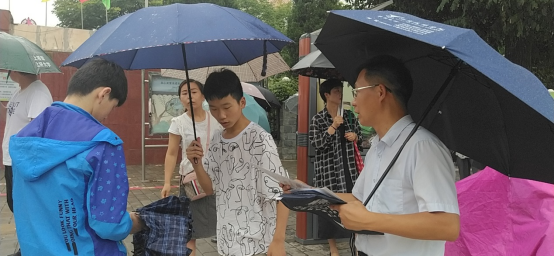 到了下午,天氣轉(zhuǎn)晴,溫度也逐漸高升,蒸籠一樣的考場外,老師們依然堅(jiān)守在各個(gè)考點(diǎn),做著職業(yè)教育的擺渡人。在為每一位中考生助力加油的同時(shí),及時(shí)將國家職業(yè)教育的利好消息傳遞給每位家長和徘徊在人生十字路口的考生們。