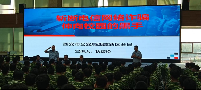 本次反詐宣傳活動分為網(wǎng)絡(luò)電信詐騙、禁毒防毒兩部分內(nèi)容進(jìn)行宣講。在第一部分內(nèi)容中,西咸新區(qū)公安分局警官圍繞什么是電信詐騙、如何預(yù)防電信詐騙、遇到電信詐騙如何斷卡、網(wǎng)絡(luò)安全等案例進(jìn)行詳細(xì)講解。警官運用典型案例和淺顯易懂的語言,向同學(xué)們講解基本法律知識,并向同學(xué)們介紹了自我防范和保障自身安全的一些方法和策略,以及遇到危險時如何運用法律維護(hù)自己的合法權(quán)益,并強(qiáng)調(diào)全體同學(xué)要樹立安全意識,從自我做起,從點滴做起,積極行動起來,參與到有序校園、安全校園的建設(shè)當(dāng)中來。