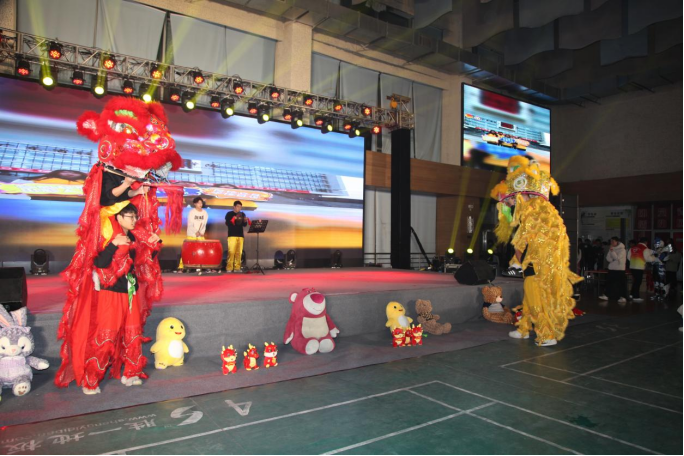 現(xiàn)代服務(wù)系的舞獅表演《雄獅迎新春》,伴隨著鏗鏘有力的鼓樂,兩只憨態(tài)可掬的“小獅子”在現(xiàn)場騰挪跳躍,贏得現(xiàn)場觀眾的滿堂喝彩。