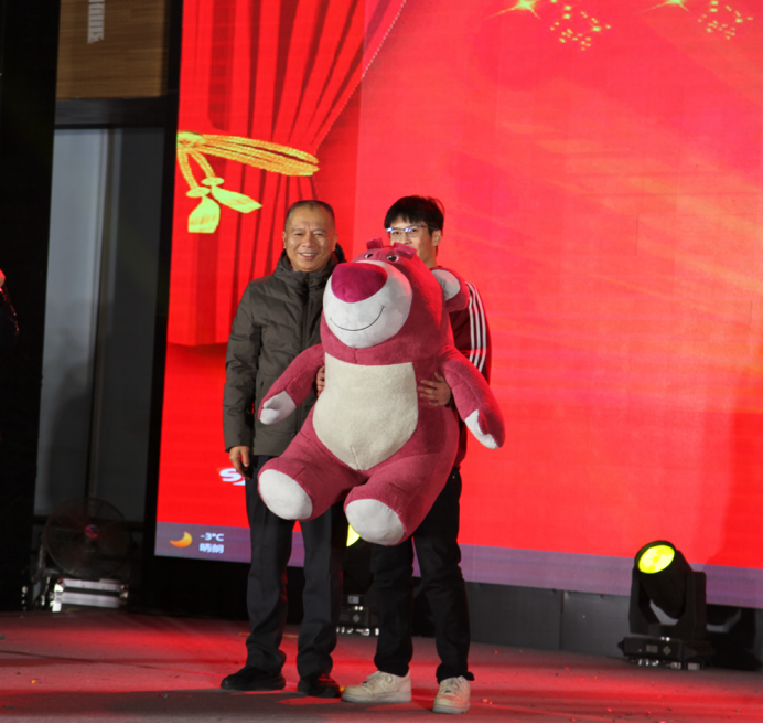 精彩的節(jié)目不斷呈現(xiàn),現(xiàn)場歡呼聲、掌聲此起彼伏?,F(xiàn)場互動抽獎(jiǎng)環(huán)節(jié),更是讓聯(lián)歡會增添了幾分熱鬧和喜慶。學(xué)院黨委副書記、紀(jì)委書記程智平為幸運(yùn)觀眾頒獎(jiǎng),并合影留念。經(jīng)過2個(gè)小時(shí)的精彩表演,聯(lián)歡會在學(xué)院領(lǐng)導(dǎo)、全體演職人員的大合唱《難忘今宵》中落下帷幕。