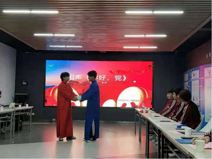 交流會(huì)上,24WG機(jī)電一班團(tuán)支部書記吉翔同學(xué)以互問互答的方式向大家提出黨史小問題,同學(xué)們進(jìn)行搶答,共同學(xué)習(xí)黨史知識(shí);史念同學(xué)向大家分享了她參觀八路軍西安辦事處紀(jì)念館的感想心得;最后,全體團(tuán)員進(jìn)行了文藝表演。高云普、白巖松和李南杰三位同學(xué)為大家?guī)砝收b《祖國(guó)啊,我親愛的祖國(guó)》;尚孝中、宋星宇、李彥錫、李睿琦和武旭同學(xué)表演合唱 《團(tuán)結(jié)就是力量》;常嘉碩、楊云霄同學(xué)帶來吉他彈唱《稻香》;吉翔、李嘉亮和黃一然同學(xué)帶來朗誦《少年中國(guó)說》;王智斌、張博表演了相聲《你好,黨》。