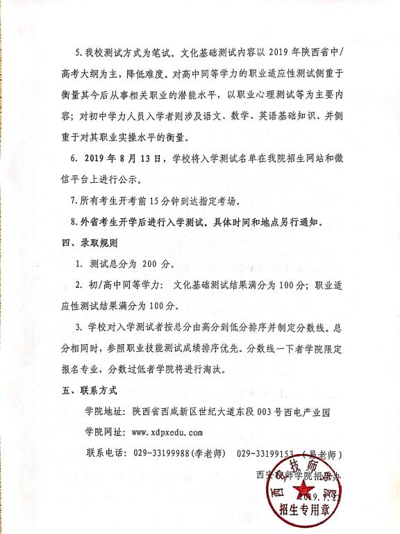 關(guān)于參加2019年西安技師學(xué)院入學(xué)測試的通知