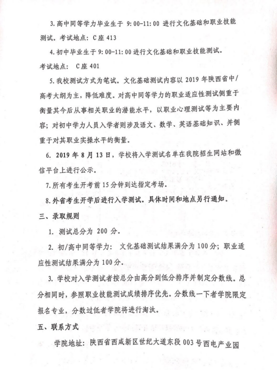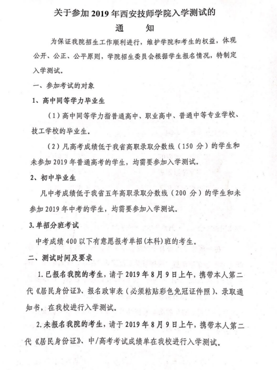 關(guān)于參加2019年西安技師學(xué)院入學(xué)測(cè)試的通知