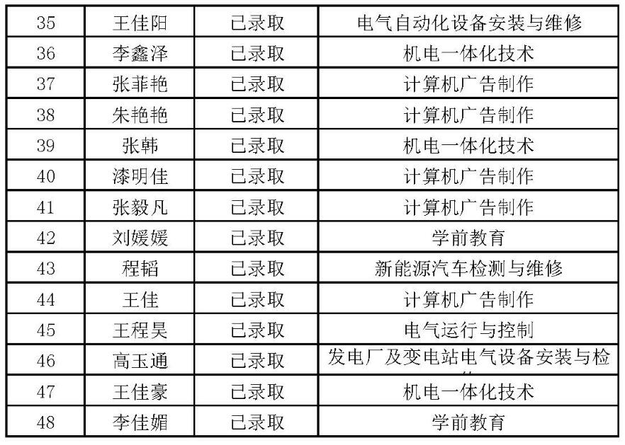 2019年西安技師學(xué)院通過入學(xué)測試錄取學(xué)生名單