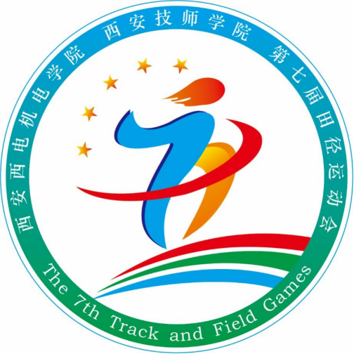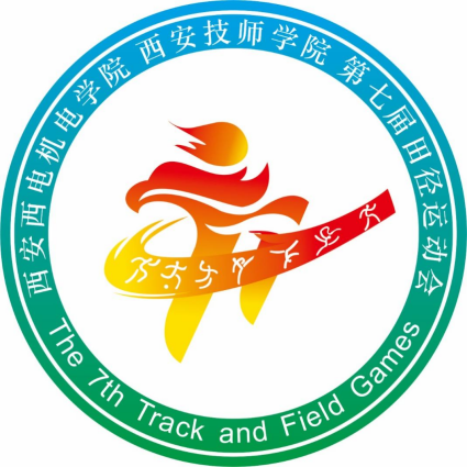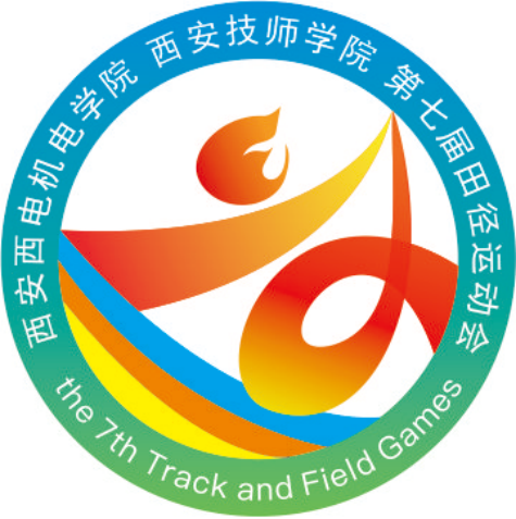 外圍雙圓環(huán)文字設(shè)計兼具功能性與文化性。中文“西安西電機電學(xué)院西安技師學(xué)院第七屆田徑運動會” 與英文 “The 7th Track and Field Games”,清晰界定活動的主體屬性與屆次,強化師生對校園活動的歸屬感與紀念意義,也體現(xiàn)學(xué)校對國際化表達的融合。