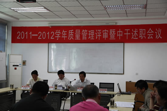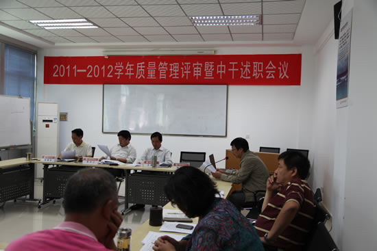 會議上,副院長管理者代表王德意作了一年來內(nèi)外部環(huán)境對學(xué)院質(zhì)量方針目標(biāo)影響的分析報告,介紹了自2011年管理評審以來學(xué)院內(nèi)外部環(huán)境變化對學(xué)院質(zhì)量方針、目標(biāo)的影響。質(zhì)量管理員姚永樂作學(xué)院工作報告匯報了質(zhì)量管理體系運行的情況。各部門負責(zé)人做了工作總結(jié),介紹了本部門開展工作的具體做法,與去年的工作進行了對比,并提出了各自具體改進工作的辦法,全體中干對本人一年來的履職情況進行了匯報。