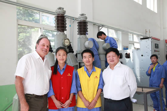 隨后,杰克·杜塞爾多普一行在李長江院長的陪同下,參觀了高壓電氣系、工業(yè)自動(dòng)化系、汽車工程教研室的課堂教學(xué)與實(shí)訓(xùn)中心,以及校辦工廠豪特公司生產(chǎn)車間和我院現(xiàn)代化的大型學(xué)生餐廳。在高電系實(shí)習(xí)教室,都塞爾多普主席和正值擔(dān)任13G輸變電高電2班安全員的高陽陽、高曉燕同學(xué)的交流中,杜塞爾多普主席問到“你為什么選擇這所學(xué)校?之前有沒有來過這所學(xué)校?你了解你的專業(yè)嗎?”兩位同學(xué)在回答中對(duì)專業(yè)的了解和對(duì)職業(yè)的熱愛使杜塞爾多普主席對(duì)我院學(xué)生刮目相看、連連稱贊。當(dāng)杜塞爾多普主席參觀到我院預(yù)備技師班的作品展室時(shí),饒有興趣的親自操作了我院學(xué)生自己研制的塔式起重機(jī)模型,并給予高度評(píng)價(jià)。