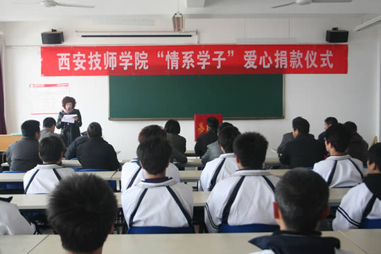 “愛人者人恒愛之,讓我們伸出友愛的雙手,為黑暗里頑強(qiáng)掙扎的年輕生命點(diǎn)亮一盞希望的明燈。”2011年3月4日下午,學(xué)院在位于西安灃渭新區(qū)西電產(chǎn)業(yè)園內(nèi)的新校區(qū)舉行了一場感人至深的捐款儀式。學(xué)院師生們將一張張飽含著愛心的捐款放進(jìn)捐款箱,向患病學(xué)生趙秋成表達(dá)早日康復(fù)的祝福,并向被病魔奪去生命的王楠同學(xué)表達(dá)沉痛的哀悼。