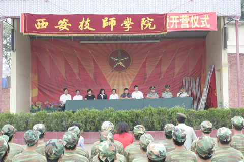 為加強(qiáng)新生的國(guó)防教育,提高新生入校后的整體素質(zhì),2009年8月23日上午八時(shí),學(xué)院組織新生開赴藍(lán)田軍訓(xùn)基地開始為期一周的軍訓(xùn)生活。在開營(yíng)儀式上賀惠民副院長(zhǎng)作了開訓(xùn)動(dòng)員,希望大家以飽滿的精神狀態(tài)投入到軍訓(xùn)中去,為成為優(yōu)秀品質(zhì)和職業(yè)技能兼?zhèn)涞钠髽I(yè)人才打下堅(jiān)實(shí)的基礎(chǔ)。參訓(xùn)新生紛紛表示,要珍惜這次軍訓(xùn)的機(jī)會(huì),錘煉意志,增強(qiáng)自信,以優(yōu)異的成績(jī)完成軍訓(xùn)任務(wù)。