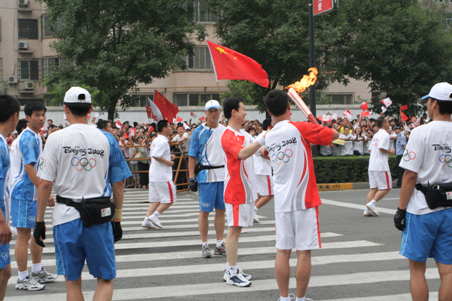 4日的西安,溫度適宜,清風(fēng)徐徐,沿街彩旗飛揚(yáng),到處飄蕩“中國加油、奧運(yùn)加油、北京加油”的歡呼聲,“千年古都”三秦大地散發(fā)出不可抵擋的魅力。對于西安人民來說,熊熊的火焰映亮了每個人的臉龐與心靈。而西安人也將與其他國人一樣,通過對圣火迎接及傳遞的莊重,向世界展現(xiàn)更為開放的華夏之心。清晨5時,經(jīng)過精心選拔的150名師生按照協(xié)助部隊要求早早的就來到火炬?zhèn)鬟f沿線等候待命,為充分展示西安人的熱情好客,弘揚(yáng)西電人的精神,學(xué)院師生克服了早起的疲憊,聽候活動總指揮的安排,精神抖擻的站在指定位置,無論是被分派在離火炬?zhèn)鬟f位置遠(yuǎn)還是近,他們沒有絲毫怨言,當(dāng)火炬手到來時,他們始終堅持自己的本職工作,維持現(xiàn)場秩序?;鹁?zhèn)鬟f儀式結(jié)束后,學(xué)院師生又協(xié)助公安機(jī)關(guān)疏散圍觀群眾。