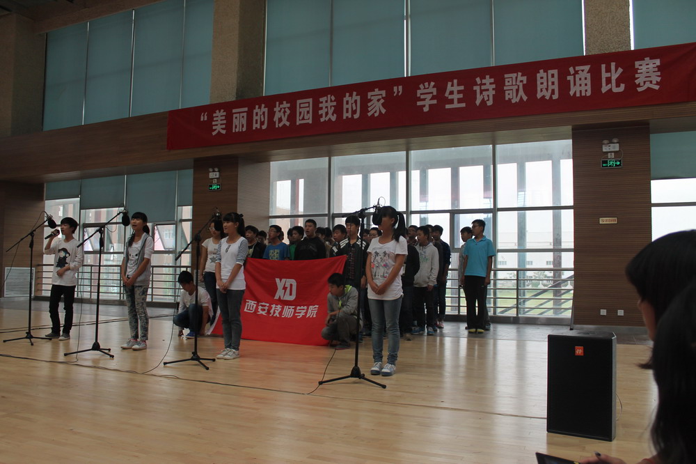 為了使我院學生以昂揚的精神風貌和積極向上的學習態(tài)度在校愉快的學習與生活,進一步促進校園文化建設(shè),培養(yǎng)學生具有良好的道德觀念和職業(yè)素養(yǎng),2013年9月25日學生工作處組織開展了“美麗校園我的家”詩歌朗誦活動。