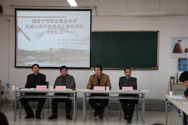 為推進(jìn)陜西省技工院校示范校建設(shè)工作,由陜西省人力資源和社會(huì)保障廳在我院組織舉辦的第四期示范建設(shè)專題培訓(xùn)班。根據(jù)示范校建設(shè)內(nèi)容及進(jìn)度計(jì)劃,省人社廳針對我省技工院校前三批示范校建設(shè)項(xiàng)目學(xué)校開辦三期專題培訓(xùn)班,效果良好,有效提升了我省技工院校示范校建設(shè)能力,確保了建設(shè)進(jìn)度。前三期示范校建設(shè)師資培訓(xùn)班由我院承辦。