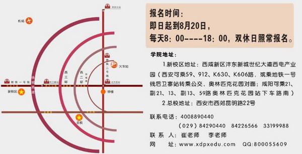 為響應(yīng)全國(guó)首屆職業(yè)教育活動(dòng)周,進(jìn)一步加強(qiáng)學(xué)院與家長(zhǎng)、企業(yè)等外界的溝通與聯(lián)系,擴(kuò)大學(xué)校的社會(huì)影響力和知名度,展示學(xué)校的辦學(xué)理念、教育教學(xué)成果、職業(yè)素養(yǎng)和就業(yè)優(yōu)勢(shì),全面提升學(xué)校教育教學(xué)管理水平,打造“學(xué)生喜愛(ài)、家長(zhǎng)信賴、企業(yè)認(rèn)可”的高素質(zhì)技能人才培訓(xùn)基地,西安技師學(xué)院5月21日—5月23日,在西咸新區(qū)世紀(jì)大道東段三號(hào)校區(qū)將安排校園開(kāi)放日--歡迎廣大學(xué)生、家長(zhǎng)、用工企業(yè)來(lái)校參觀咨詢。