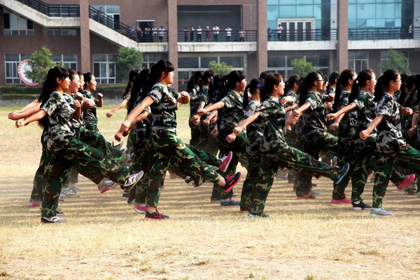 伴隨著教官的口令,學(xué)生們神情堅(jiān)毅、英姿颯爽、整齊劃一地經(jīng)過(guò)主席臺(tái),洪亮的口號(hào)聲響徹全場(chǎng)。