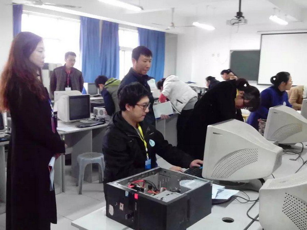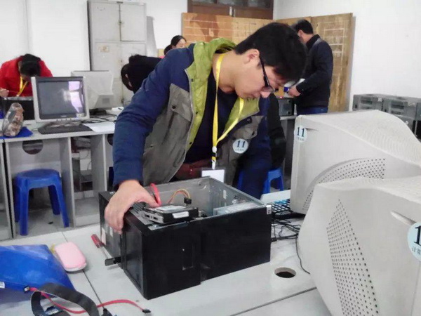 圖為丁明景老師在比賽中進(jìn)行計(jì)算機(jī)組裝