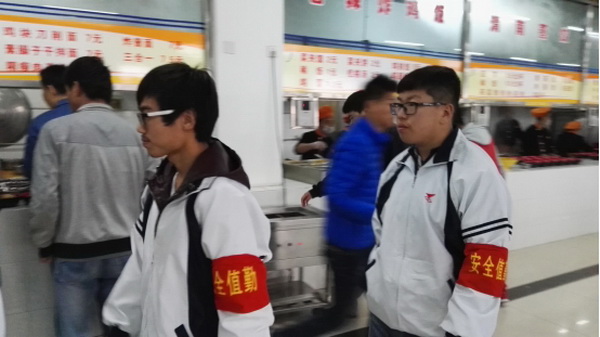 學(xué)生會生活部的同學(xué)們在餐廳進(jìn)行巡查
