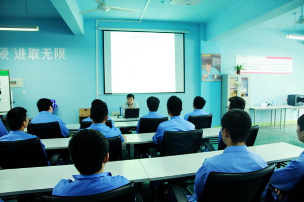 西電開關(guān)電氣有限公司高級技師、全國勞模高喜喜給學(xué)生講課