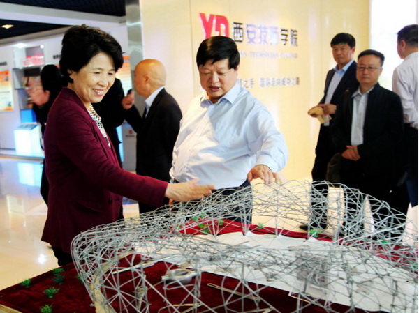 陜西省政協(xié)副主席、陜西省中華職業(yè)教育社主任李冬玉在觀看學(xué)生作品
