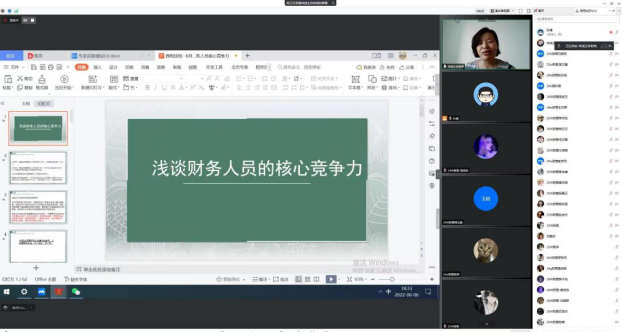 為提升財(cái)務(wù)管理學(xué)生了解行業(yè)發(fā)展趨勢(shì),擴(kuò)展知識(shí)儲(chǔ)備,了解新時(shí)代下財(cái)務(wù)管理專業(yè)的前沿技術(shù)及發(fā)展趨勢(shì),2022年6月6日現(xiàn)代服務(wù)系邀請(qǐng)會(huì)計(jì)專業(yè)講師林絨進(jìn)行財(cái)務(wù)人員核心競(jìng)爭(zhēng)力線上培訓(xùn)。參加培訓(xùn)的有財(cái)務(wù)管理專業(yè)學(xué)生、各班優(yōu)秀學(xué)生代表、專業(yè)老師等共70余人。