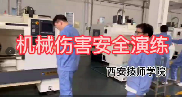 本次應急演練主要是模擬學生在操作過程中突發(fā)意外傷害事故的應急處理流程。學生模擬在操作數(shù)控銑床時因操作不當,導致手臂被機床夾住,導致手臂斷裂,受到嚴重的機械傷害。指導老師王闖按照斷開設(shè)備電源、現(xiàn)場包扎處理、電話報警、現(xiàn)場事故排查,傷員送往醫(yī)院治療等流程演繹應急處理全過程。接演練的機會,王老師在現(xiàn)場對學生進行了預防機械傷害安全教育。