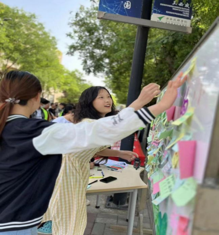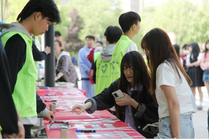 本次環(huán)節(jié)中,最受歡迎的是“祝福陌生人”。該活動(dòng)以學(xué)生在展板給陌生人留言的方式,幫助學(xué)生在溝通中減少誤解,不懼表達(dá),悅納自我。在留言區(qū),每個(gè)同學(xué)都寫(xiě)下對(duì)陌生人的祝福話語(yǔ),隨后進(jìn)行張貼,大家用一顆真誠(chéng)的心溫暖他人,感受人與人之間的善良和真誠(chéng)。