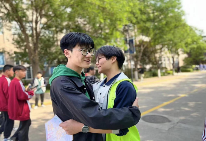 網(wǎng)絡(luò)將人們的社交圈子無(wú)限放大,我們也成為了低頭族,忘記了和周?chē)说慕涣??!白杂蓳肀А杯h(huán)節(jié)在學(xué)院公共區(qū)域內(nèi)開(kāi)展,從最開(kāi)始由志愿者對(duì)路過(guò)的同學(xué)們送上一個(gè)大大的擁抱,到后來(lái)學(xué)生之間主動(dòng)的相互擁抱,真誠(chéng)的笑容在每一個(gè)人臉上綻放。“自由擁抱”,讓大家放下自己的面具與疲憊,放開(kāi)自己的心去與陌生人相擁,不但釋放了自己也同樣溫暖了他人。