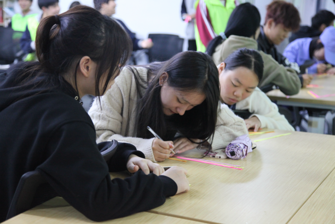 在游戲環(huán)節(jié),裘琛老師帶領(lǐng)學生開展了“成長五部曲”趣味互動游戲。該活動通過將學生分為五組,模擬從小動物“進化”為人的過程,幫助學生正確看待成長中遇到的挫折。