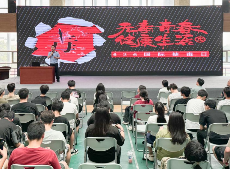 活動(dòng)現(xiàn)場(chǎng)播放視頻教育短片《知否(禁毒版)》。西安市強(qiáng)制隔離戒毒所王警官以《防范藥物濫用守護(hù)無(wú)毒青春》為主題為現(xiàn)場(chǎng)師生授課。他通過(guò)豐富的毒品案例生動(dòng)形象地為全體師生講解了什么是毒品、概括了毒品依賴(lài)性、非法性、危害性的特點(diǎn),并提醒廣大學(xué)生不要因?yàn)楹闷妗o(wú)知,誤入歧途。