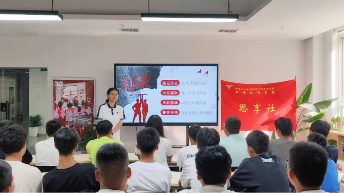 為緬懷先烈,繼承和發(fā)揚(yáng)愛國主義精神,紀(jì)念“九一八”事變,9月18日下午,學(xué)院思享社舉辦“勿忘國恥,緬懷先烈,振興中華,吾輩自強(qiáng)”主題活動(dòng)。