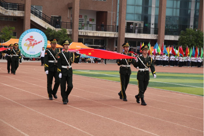 開幕式上,春風點燃熱血,賽道見證鋒芒。國旗校旗護衛(wèi)隊、會徽隊、彩旗方隊,各系學(xué)生代表方隊、裁判員代表隊依次邁著整齊劃一的步伐,喊著嘹亮口號走過主席臺。他們的每一步都傳遞著“青春逐夢賽場,體育點亮未來”的堅定信念,展現(xiàn)出“跑贏青春,越過山海,我的主場我主宰”的自信豪邁。