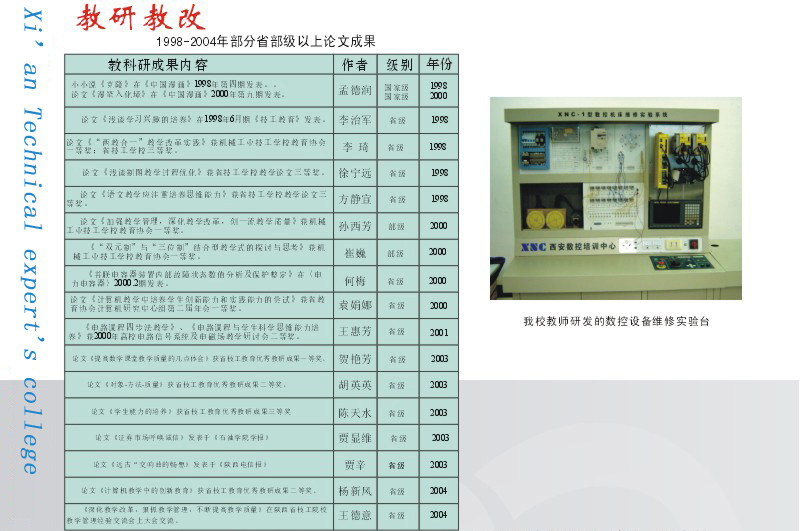 我院教師論文成果及研發(fā)數(shù)控設備維修臺