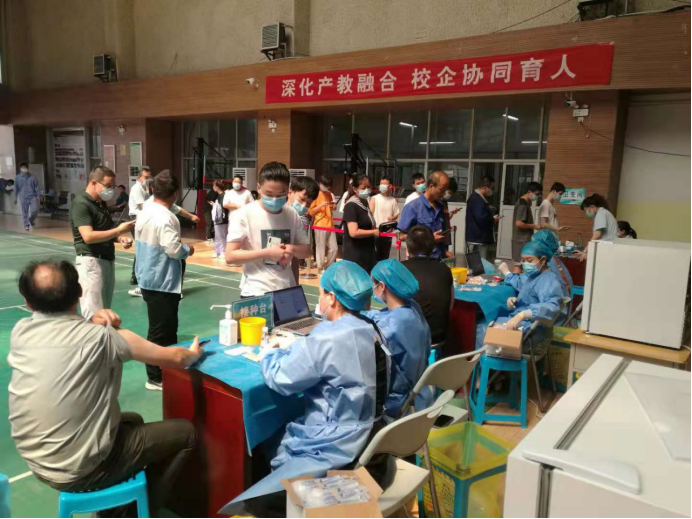 10點,疫苗接種工作正式開始,在學院各個部門的緊密配合下,疫苗接種工作順利有效的進行。