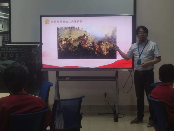 王楠書(shū)記以中央美術(shù)學(xué)院教授、油畫(huà)家韋啟美先生于1977年創(chuàng)作的一幅油畫(huà)《青紗帳里游擊隊(duì)員逞英豪》為內(nèi)容,講述了中國(guó)共產(chǎn)黨領(lǐng)導(dǎo)的游擊隊(duì)抗擊日本侵略者的英勇事跡。《青紗帳里游擊隊(duì)員逞英豪》這幅作品它的題目和內(nèi)容都源自《黃河大合唱》的歌詞,畫(huà)作反映了抗日戰(zhàn)爭(zhēng)期間,華北地區(qū)游擊隊(duì)英勇抗戰(zhàn)的戰(zhàn)斗場(chǎng)面。作品選擇游擊隊(duì)員沖出青紗帳的激烈場(chǎng)面為表現(xiàn)主體,畫(huà)面洋溢著激昂的英雄主義情調(diào)。當(dāng)年鐵道游擊隊(duì)馳騁的疆場(chǎng),如今密布的是縱橫交織的交通網(wǎng)絡(luò),動(dòng)車和高鐵展示著令我們驕傲的中國(guó)速度。戰(zhàn)爭(zhēng)年代滿目瘡痍的華北平原,如今到處是一派欣欣向榮的生機(jī)。在新的歷史起點(diǎn)上,生活在這片土地上英勇智慧的人民,繼續(xù)發(fā)揚(yáng)優(yōu)良的革命傳統(tǒng),在民族復(fù)興的偉大征程中再創(chuàng)輝煌!