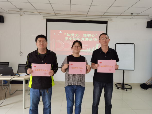 為了檢驗(yàn)和鞏固黨員同志們學(xué)習(xí)黨史、牢記黨史的階段性成果,全體黨員進(jìn)行了黨史知識(shí)競賽活動(dòng),活動(dòng)以閉卷筆答的方式進(jìn)行,全體黨員認(rèn)真答題,以這種方式向革命先烈致敬。競賽最后,每位同志都交出了滿意的答卷,其中單麗娟、趙鋆、何立成同志成績優(yōu)異,被支部授予“黨史學(xué)習(xí)小達(dá)人”。徐曉英書記強(qiáng)調(diào),所有黨員要向以上三位同志學(xué)習(xí),把黨的歷史牢記心里,黨史學(xué)習(xí)沒有止境。